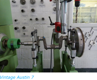 The crankshaft, flywheel, drive plate, front pulley and timing gear come next, for this you need a machine (see photo) this assembly has a pure rotating moment with no reciprocal components at all. it is balanced by spinning the assembly in ball races mounted in carriers connected to incredibly sensitive strain gauges which can detect the slightest out of balance down to ¼ of a gram, it is a time consuming but fairly straightforward procedure if you have the machine. the only tricky bit is that some engines require special adjustable counterweight assembly’s (which we have) attaching to the big end journals to simulate a % of the piston and rod weights, arrived at by certain formulae dependant on engine type.