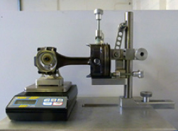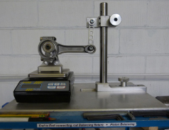 Establishing big end weight of connecting rod prior to balancing the crank assembly on a special fixture for when pistons are “press pin fitted” to the rods, to eliminate the possibility of damaging them by removal and refitting.