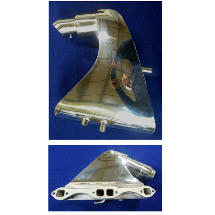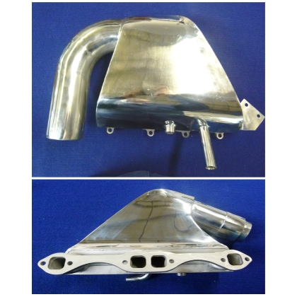 WEIGHT SAVING :- We all know boats unlike cars are VERY weight sensitive. Worst case scenario. A big block manifold with a 6" spacer weighs in at approx 93lb EACH. The S/S equivalent, pictured right, weighs approx 21lb each. That is a saving of 72lbs each or 144lbs per engine. = 288lbs! in a twin engine boat. The lightest cast iron small block is approx 68lbs EACH S/S equivalent see picture weighs approx 16lbs saving 52lbs each, 104lbs per engine. 208lbs in a twin engine boat. This means, not only will your boat perform better due to an increase in power due to better gas flow design, but also the not insignificant, lose in weight, and also over a period of time you will be using less fuel, as the drop in weight means less energy required to push your boat through the water.